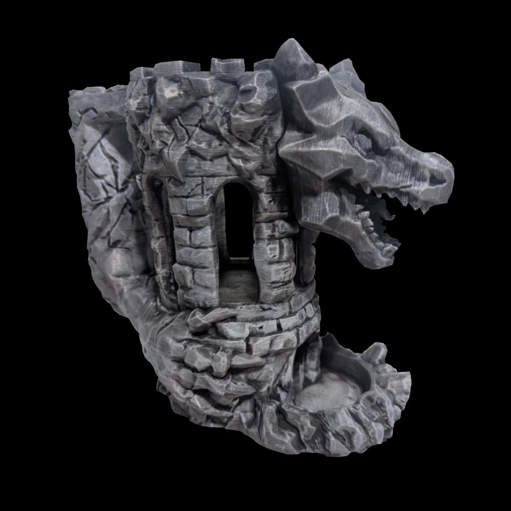 Unleash the power of the dragon at your gaming table and beyond with this striking Fortress Dragon Mug and Dice Roller. The detailed sculpt brings a touch of mythical might to your sips, securely holding your drink, and then transforming into a captivating dice tower when it's time to roll for initiative. A perfect blend of practicality and awe-inspiring design for any fantasy enthusiast.