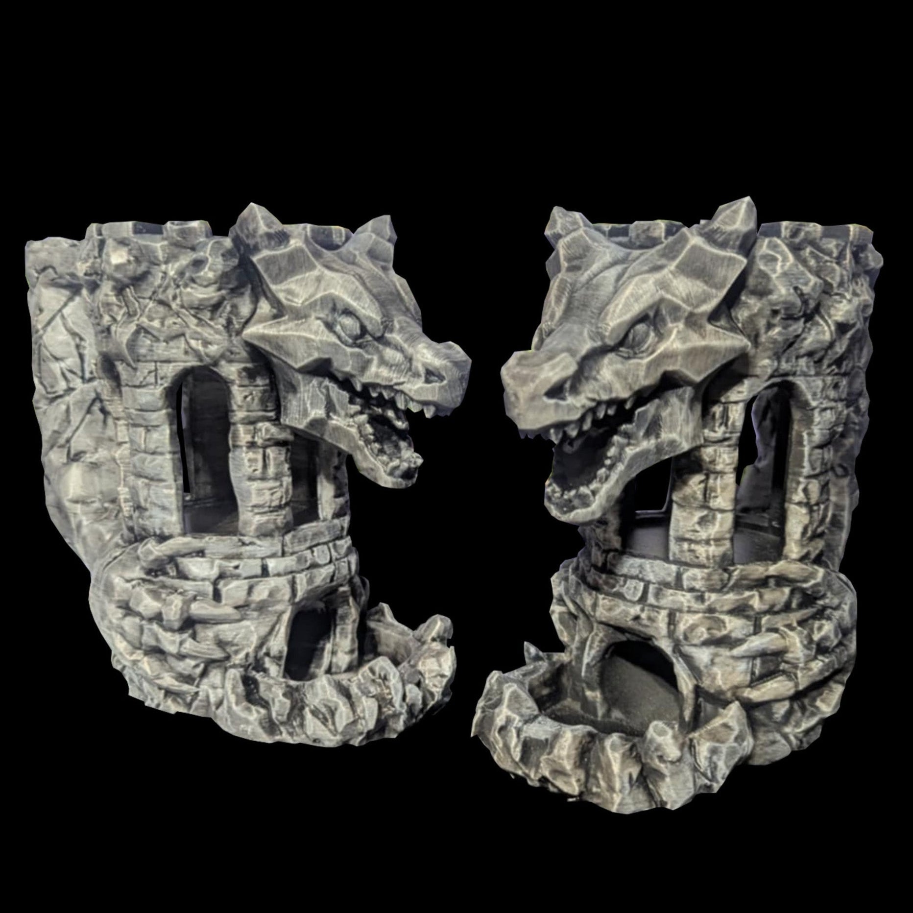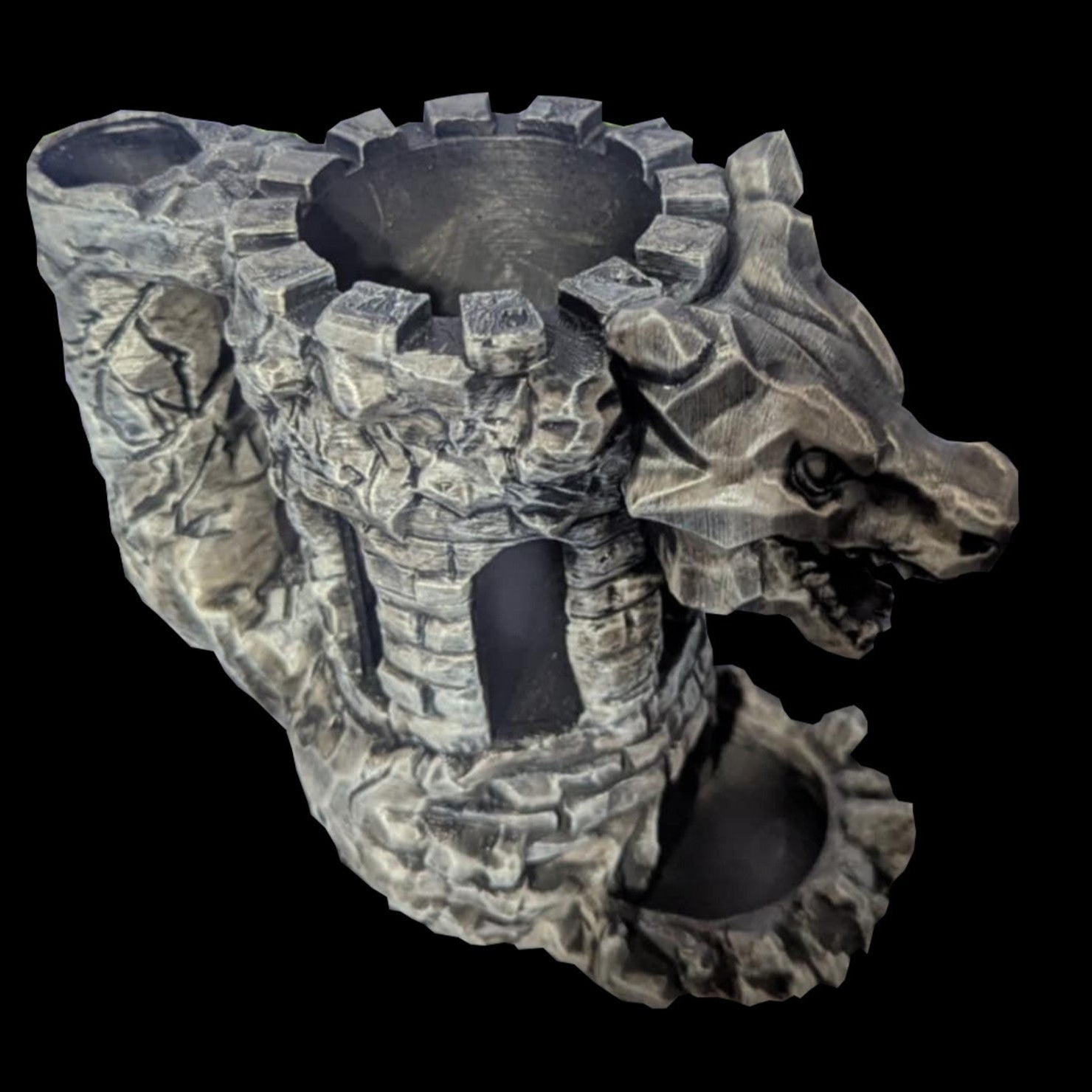 Unleash the power of the dragon at your gaming table and beyond with this striking Fortress Dragon Mug and Dice Roller. The detailed sculpt brings a touch of mythical might to your sips, securely holding your drink, and then transforming into a captivating dice tower when it's time to roll for initiative. A perfect blend of practicality and awe-inspiring design for any fantasy enthusiast.
